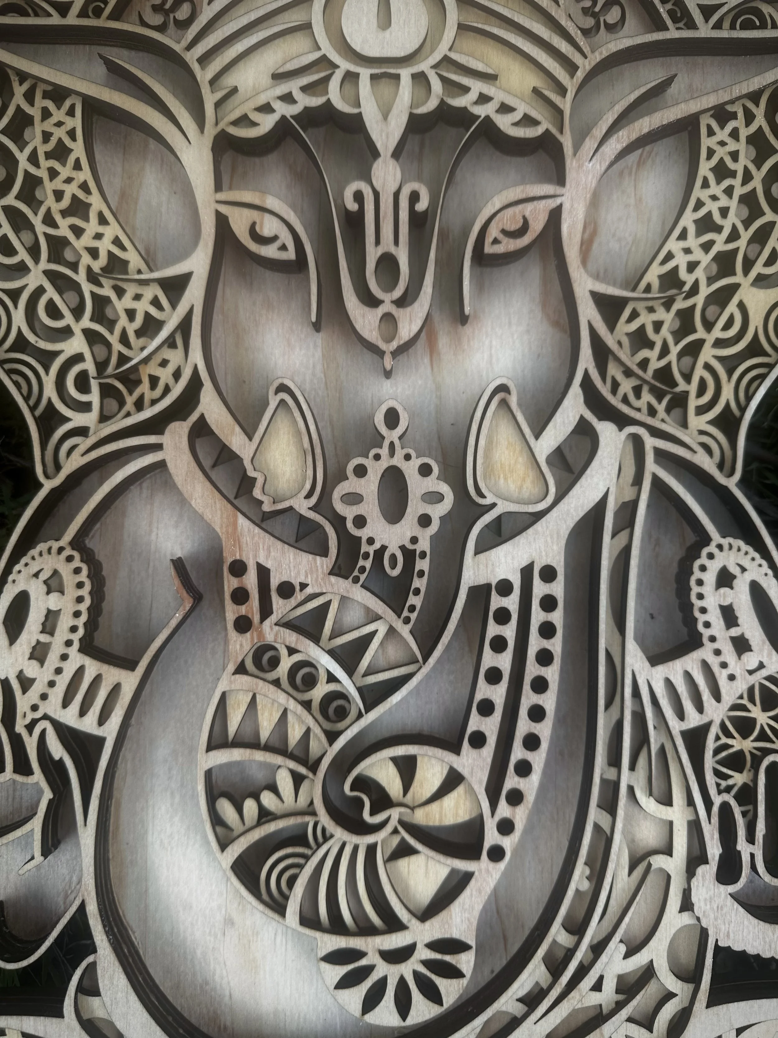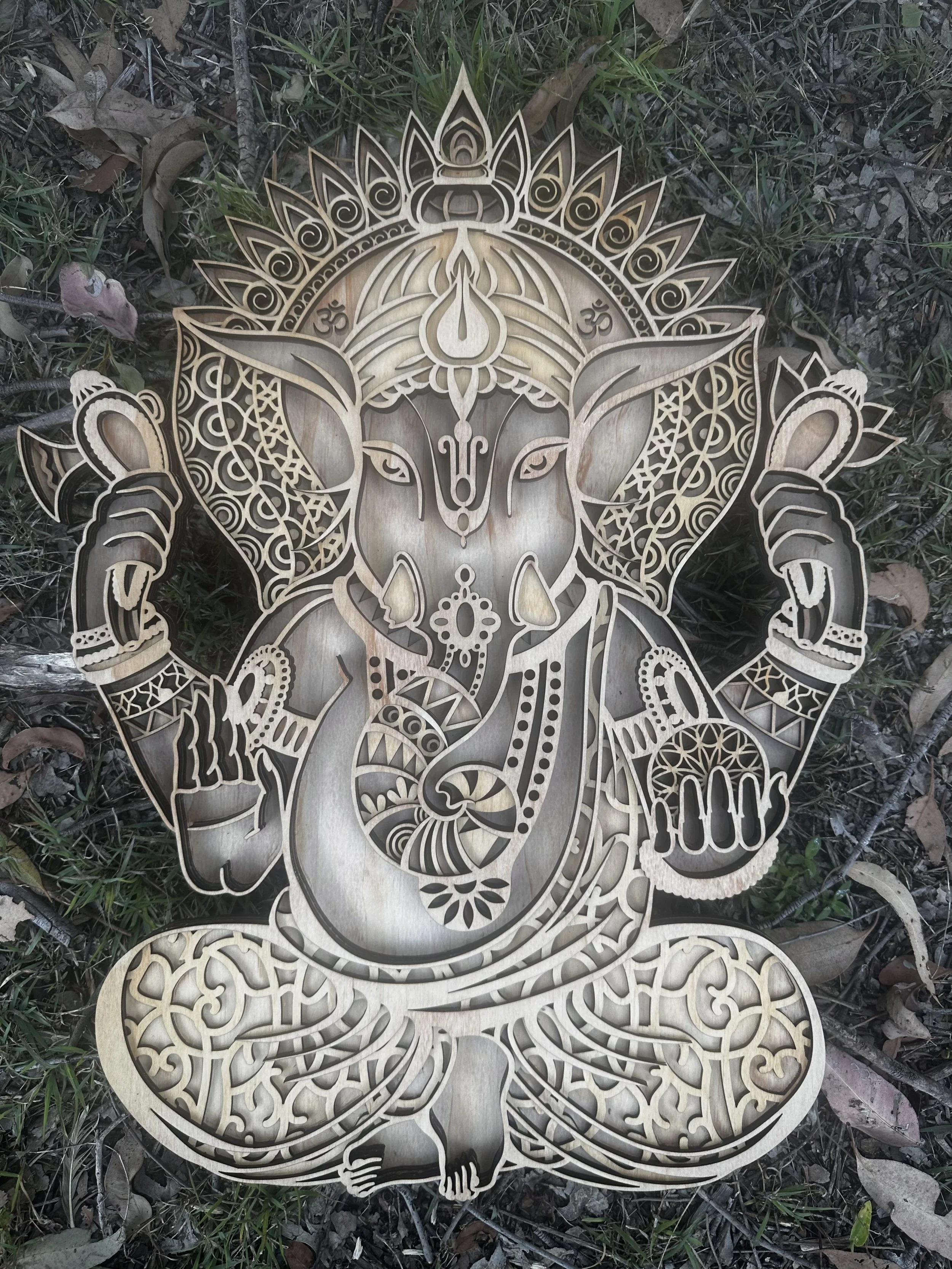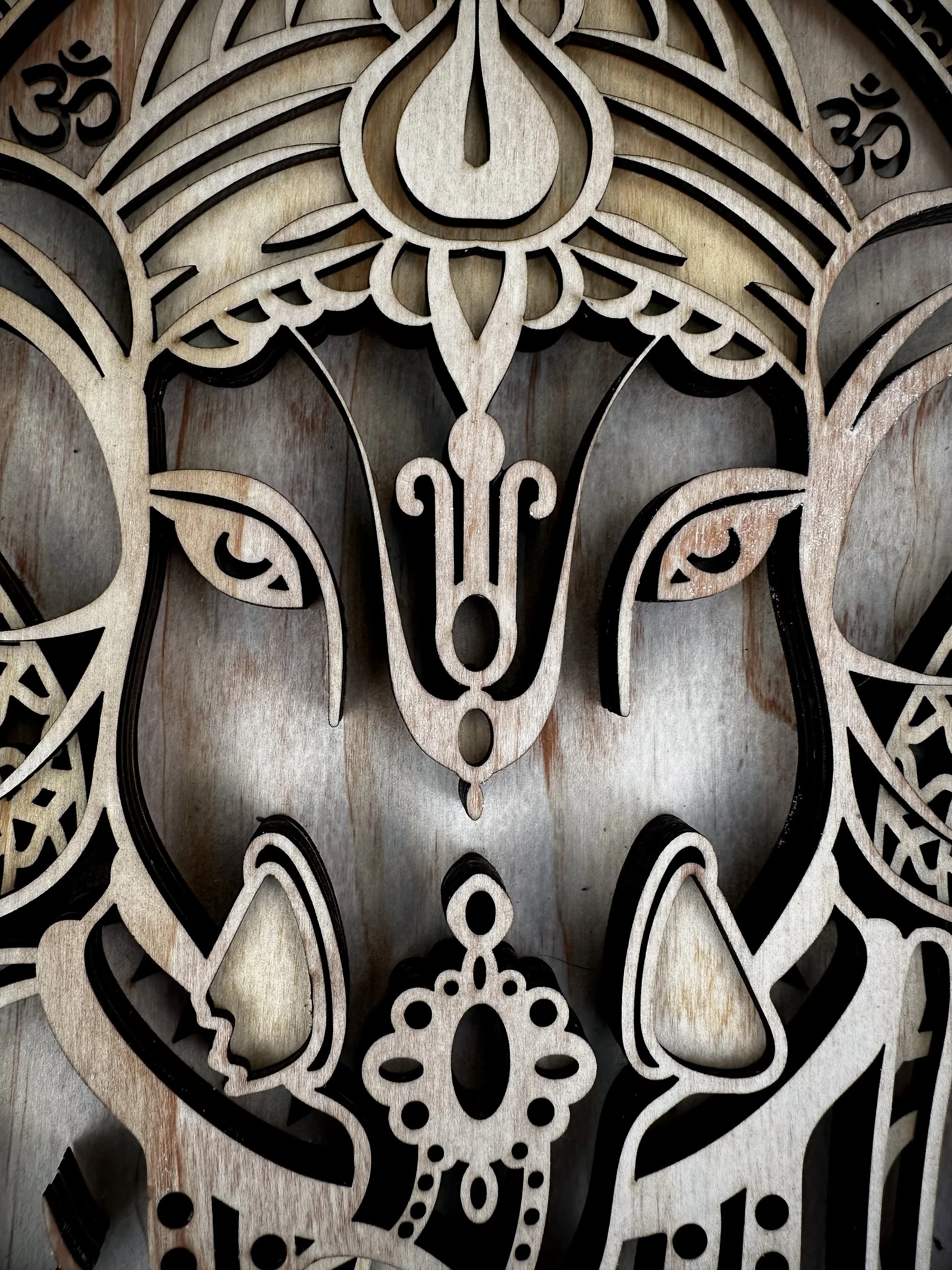Ganesha is a Hindu Deity and is the remover of all obstacles. The detail in this piece can not truly be captured in photos but is absolutely epic.
